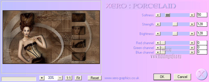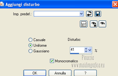 qui puoi trovare qualche risposta ai tuoi dubbi. Se l'argomento che ti interessa non è presente, ti prego di segnalarmelo. Per tradurre questo tutorial ho usato PSP X. Occorrente: Materiale qui Il tube utilizzato è di Karine. Filtri in caso di dubbi, ricorda di consultare la mia sezione filtri qui Xero - Porcelain qui ![]() 1. Apri una nuova immagine trasparente 1000 x 550 pixels. Selezione>Seleziona tutto. 2. Apri il tube "back" e vai a Modifica>Copia. Torna al tuo lavoro e vai a Modifica>Incolla nella selezione. Selezione>Deseleziona. 3. Apri il tube "overlay" e vai a Modifica>Copia. Torna al tuo lavoro e vai a Modifica>Incolla come nuovo livello. Lascialo come sta. 4. Apri il tube "fractal" e vai a Modifica>Copia. Torna al tuo lavoro e vai a Modifica>Incolla come nuovo livello. Lascialo come sta. 5. Apri il tube "mask" e vai a Modifica>Copia. Torna al tuo lavoro e vai a Modifica>Incolla come nuovo livello. Spostalo a sinistra, contro il bordo.![]() 6. Apri il tube "puntjes" e vai a Modifica>Copia. Torna al tuo lavoro e vai a Modifica>Incolla come nuovo livello. Lascialo come sta. 7. Apri il tube deco1 e vai a Modifica>Copia. Torna al tuo lavoro e vai a Modifica>Incolla come nuovo livello. Lascialo come sta. Cambia la modalità di miscelatura di questo livello in Luminanza (esistente). 8. Apri il tube deco2 e vai a Modifica>Copia. Torna al tuo lavoro e vai a Modifica>Incolla come nuovo livello. Lascialo come sta. ![]() 9. Cambia la modalità di miscelatura di questo livello in Luce diffusa. 10. Apri il tube "blokjes" e vai a Modifica>Copia. Torna al tuo lavoro e vai a Modifica>Incolla come nuovo livello. Spostalo a destra.Cambia la modalità di miscelatura di questo livello in Moltiplica, e abbassa l'opacità all'82%. ![]() 11. Selezione>Seleziona tutto. Selezione>Mobile. Selezione>Immobilizza. Apri il tube della donna e e vai a Modifica>Copia. Torna al tuo lavoro e vai a Modifica>Incolla come nuovo livello. Posiziona il tube sui blocchi selezionati.![]() Selezione>Inverti. Premi sulla tastiera il tasto CANC. Livelli>Disponi>Sposta giù. Selezione>Deseleziona. 12. In alternativa puoi copiare e incollare sul tuo lavoro il tube "blokje vrouw". Posiziona correttamente il tube.Nella paletta dei livelli porta questo livello sotto il livello dei blocchi. ![]() L'esempio con questo tube in fondo al tutorial 13. Attiva nuovamente il tube della donna e vai a Modifica>Copia. Torna al tuo lavoro e vai a Modifica>Incolla come nuovo livello. Sposta il tube a sinistra.14. Livelli>Duplica. Attiva il livello sottostante dell'originale. Regola>Aggiungi/Rimuovi disturbo>Aggiungi disturbo. ![]() 15. Effetti>Effetti di distorsione>Vento - da sinistra, intensità 100. ![]() 16. Attiva il livello della copia. Effetti>Effetti 3D>Sfalsa ombra. ![]() 17. Apri il tube "wordt-art" e vai a Modifica>Copia. Torna al tuo lavoro e vai a Modifica>Incolla come nuovo livello. Spostalo in alto al centro.18. Aggiungi il tuo nome e/o il tuo watermark su un nuovo livello. 19. Livelli>Unisci>Unisci tutto. Immagine>Aggiungi bordatura, 3 pixels, simmetriche, con un colore scuro scelto dal tube. passando il mouse sull'immagine, appare l'icona del contagocce, quando hai scelto il colore, clicca con il tasto sinistro del mouse per impostarlo. ![]() 20. Regola>Messa a fuoco>Accentua messa a fuoco. Effetti>Plugins>Xero - Porcelain. ![]() Salva in formato jpg. ![]() ![]() Se hai problemi o dubbi, o trovi un link non funzionante, o anche soltanto per un saluto, scrivimi. 11 Gennaio 2013 |