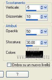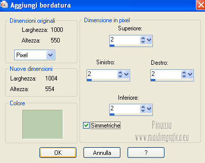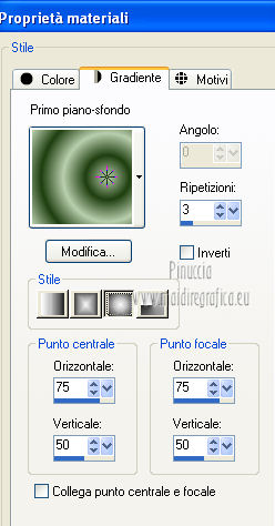 qui puoi trovare qualche risposta ai tuoi dubbi. Se l'argomento che ti interessa non è presente, ti prego di segnalarmelo. Per tradurre questo tutorial ho usato PSP X. Occorrente: Materiale qui Il tube della donna è di Corinne Vicaire. Filtri in caso di dubbi, ricorda di consultare la mia sezione filtri qui Xero - Porcelain qui ![]() 1. Apri una nuova immagine trasparente 1000 x 550 pixels. 2. Selezione>Seleziona tutto. Apri il tube "back 1" e vai a Modifica>Copia. Torna al tuo lavoro e vai a Modifica>Incolla nella selezione. Selezione>Deseleziona. 3. Apri il tube "back 2" e vai a Modifica>Copia. Torna al tuo lavoro e vai a Modifica>Incolla come nuovo livello. Lascialo come sta. 4. Apri il tube "back 3" e vai a Modifica>Copia. Torna al tuo lavoro e vai a Modifica>Incolla come nuovo livello. Lascialo come sta. 5. Apri il tube "back 4" e vai a Modifica>Copia. Torna al tuo lavoro e vai a Modifica>Incolla come nuovo livello. Lascialo come sta. 6. Livelli>Unisci>Unisci visibile. 7. Regola>Messa a fuoco>Accentua messa a fuoco. 8. Apri il tube "back 5" 3. Apri il tube "back 2" e vai a Modifica>Copia. Torna al tuo lavoro e vai a Modifica>Incolla come nuovo livello. Lascialo come sta. Regola>Messa a fuoco>ACcentua messa a fuoco. 9. Apri il tube "bomen" e vai a Modifica>Copia. Torna al tuo lavoro e vai a Modifica>Incolla come nuovo livello. Lascialo come sta. Regola>Messa a fuoco>Accentua messa a fuoco. 10. Apri il tube "harttekst" e vai a Modifica>Copia. Torna al tuo lavoro e vai a Modifica>Incolla come nuovo livello. Immagine>Ridimensiona, al 90%, tutti i livelli non selezionato. ![]() 11. Apri il tube "slinger" e vai a Modifica>Copia. Torna al tuo lavoro e vai a Modifica>Incolla come nuovo livello. Spostalo in basso, come nel mio esempio.![]() 12. Apri il tube "bliksim" e vai a Modifica>Copia. Torna al tuo lavoro e vai a Modifica>Incolla come nuovo livello. Spostalo in alto, contro il bordo.![]() 13. Apri il tube "balletjes" e vai a Modifica>Copia. Torna al tuo lavoro e vai a Modifica>Incolla come nuovo livello. Lascialo come sta. 14. Apri il tube della donna e vai a Modifica>Copia. Torna al tuo lavoro e vai a Modifica>Incolla come nuovo livello. Spostalo in basso a destra.Livelli>Duplica, e attiva il livello sottostante dell'originale. Regola>Sfocatura>Sfocatura gaussiana - raggio 25. ![]() 15. Attiva il livello originale del tube. Effetti>Effetti 3D>Sfalsa ombra. ![]() 16. Apri il tube "vogels" e vai a Modifica>Copia. Torna al tuo lavoro e vai a Modifica>Incolla come nuovo livello. Spostalo in alto a destra.17. Apri il tube "wordt-art" e vai a Modifica>Copia. Torna al tuo lavoro e vai a Modifica>Incolla come nuovo livello. Spostalo a sinistra, al centro.![]() Regola>Messa a fuoco>Accentua messa a fuoco. Cambia la modalità di miscelatura di questo livello in Luce diffusa. Livelli>Duplica. Effetti>EFfetti 3D>Sfalsa ombra, con i settaggi precedenti. 18. Immagine>Aggiungi bordatura, 2 pixels, simmetriche, con il colore chiaro. ![]() Immagine>Aggiungi bordatura, 2 pixels, simmetriche, con il colore scuro. Immagine>Aggiungi bordatura, 2 pixels, simmetriche, con il colore chiaro. Immagine>Aggiungi bordatura, 20 pixels, simmetriche, con il colore scuro. Selezione>Seleziona tutto. Selezione>Modifica>Contrai - 20 pixels. ![]() 19. Passa il colore di primo piano a Gradiente. ![]() Riempi la selezione con il gradiente.20. Effetti>Effetti 3D>Sfalsa ombra, con i settaggi precedenti. Selezione>Deseleziona. Immagine>Aggiungi bordatura, 2 pixels, simmetriche, con il colore scuro. 21. Regola>Messa a fuoco>Accentua messa a fuoco. 22. Effetti>Plugins>Xero - Porcelain. ![]() Firma il tuo lavoro e salva in formato jpg. ![]() Se hai problemi o dubbi, o trovi un link non funzionante, o anche soltanto per un saluto, scrivimi. 11 Gennaio 2013 |