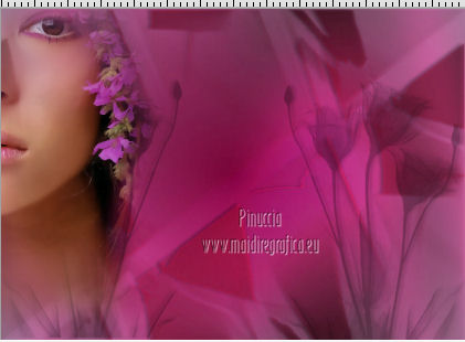 qui puoi trovare qualche risposta ai tuoi dubbi. Se l'argomento che ti interessa non è presente, ti prego di segnalarmelo. Per tradurre questo tutorial ho usato PSP X. Occorrente: Un tube a scelta. Il resto del materiale qui Il tube utilizzato è di MarieL. ![]() 1. Apri una nuova immagine trasparente 700 x 500 pixels. Selezione>Seleziona tutto. 2. Apri l'immagine di sfondo "achtergrond" e vai a Modifica>Copia. Torna al tuo lavoro e vai a Modifica>Incolla nella selezione. Selezione>Deseleziona. 3. Apri il tube del fiore "bloem" e vai a Modifica>Copia. Torna al tuo lavoro e vai a Modifica>Incolla come nuovo livello. Spostalo a sinistra.![]() Abbassa l'opacità di questo livello al 45%. Livelli>Duplica. Immagine>Rifletti. Regola>Messa a fuoco>Metti a fuoco. 4. Apri il tube del viso "vrouw" e vai a Modifica>Copia. Torna al tuo lavoro e vai a Modifica>Incolla come nuovo livello. Spostalo in alto a sinistra.![]() Abbassa l'opacità di questo livello al 40%. Livelli>Duplica. Immagine>Rifletti. Sposta questo tube un po' più in basso.![]() 5. Apri il tuo tube e vai a Modifica>Copia. Torna al tuo lavoro e vai a Modifica>Incolla come nuovo livello. Immagine>Ridimensiona, se e quanto necessario, tutti i livelli non selezionato. Posiziona il tube al centro.Livelli>Duplica. Attiva il livello sottostante dell'originale. Regola>Sfocatura>Sfocatura gaussiana - raggio 14. ![]() 6. Apri il wordart e vai a Modifica>Copia. Torna al tuo lavoro e vai a Modifica>Incolla come nuovo livello. Sposta il testo in alto a destra.7. Aggiungi il tuo nome e/o il tuo watermark su un nuovo livello. 8. Livelli>Unisci>Unisci tutto. 9. Immagine>Aggiungi bordatura, 2 pixels, simmetriche, con il colore #822849. Seleziona questo bordo con la bacchetta magica ![]() 10. Regola>Aggiungi/Rimuovi disturbo>Aggiungi disturbo. ![]() Selezione>Deseleziona. 11. Salva in formato jpg. ![]() Se hai problemi o dubbi, o trovi un link non funzionante, o anche soltanto per un saluto, scrivimi. 2 Febbraio 2013 |