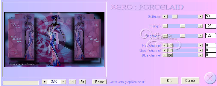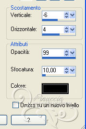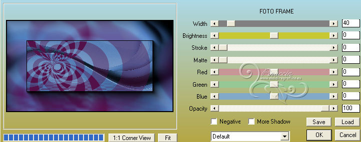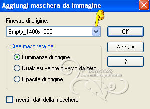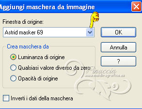 qui puoi trovare qualche risposta ai tuoi dubbi. Se l'argomento che ti interessa non è presente, ti prego di segnalarmelo. Per tradurre questo tutorial ho usato PSP X. Occorrente: Materiale qui I tubes sono di Nicole, Benice, Astrid. Filtri in caso di dubbi, ricorda di consultare la mia sezione filtri qui Xero - Porcelain qui AAA Frames - Foto Frame qui ![]() Apri la maschera in PSP e minimizzala con il resto del materiale. 1. Apri una nuova immagine trasparente 1000 x 550 pixels. 2. Selezione>Seleziona tutto. Apri il tube "Abstract_golf" e vai a Modifica>Copia. Torna al tuo lavoro e vai a Modifica>Incolla nella selezione. Selezione>Deseleziona. 3. Imposta il colore di primo piano con #541049. Livelli>Nuovo livello raster. Riempi con il colore di primo piano.4. Livelli>Nuovo livello maschera>Da immagine. Apri il menu sotto la finestra di origine e vedrai la lista dei files aperti. Seleziona la maschera "Astrid masker 69", con i seguenti settaggi: ![]() Livelli>Unisci>Unisci gruppo. 5. Livelli>Nuovo livello raster. Riempi con il colore di primo piano.6. Apri il tube Empty_1400x1050 e minimizzalo. Livelli>Nuovo livello maschera>Da immagine. Apri il menu sotto la finestra di origine e seleziona l'immagine con i seguenti settaggi: ![]() Livelli>Unisci>Unisci gruppo. 7. Livelli>Unisci>Unisci visibile. Dovresti avere questo. ![]() 8. Effetti>Plugins>AAA Frames - Foto Frame. ![]() 9. Apri il tube "overlay balls" e vai a Modifica>Copia. Torna al tuo lavoro e vai a Modifica>Incolla come nuovo livello. Spostalo contro il bordo superiore.10. Apri il tube "blokken" e vai a Modifica>Copia. Torna al tuo lavoro e vai a Modifica>Incolla come nuovo livello. Lascialo come sta. 11. Apri "overlay dotty" e vai a Modifica>Copia. Torna al tuo lavoro e vai a Modifica>Incolla come nuovo livello. Lascialo come sta. 12. Apri il tube "spotje" e vai a Modifica>Copia. Torna al tuo lavoro e vai a Modifica>Incolla come nuovo livello. Spostalo in alto al centro.![]() 13. Apri il tube nicole-femme-96-2012 e vai a Modifica>Copia. Torna al tuo lavoro e vai a Modifica>Incolla come nuovo livello. Immagine>Ridimensiona, al 40%, tutti i livelli non selezionato. ![]() Sposta il tube al centro.14. Livelli>Duplica. Immagine>Ridimensiona, all'85%, tutti i livelli non selezionato. 15. Effetti>Effetti 3D>Sfalsa ombra. ![]() Sposta la copia a destra, sullo sfondo dei blocchi.Abbassa l'opacità di questo livello al 50%. Attiva lo strumento Gomma ![]() e cancella le parti del tube che debordano dal blocco. ![]() 16. Livelli>Duplica. Immagine>Rifletti. 17. Apri il tube "tekst" e vai a Modifica>Copia. Torna al tuo lavoro e vai a Modifica>Incolla come nuovo livello. Il tube esce dai bordi dell'immagine, per visualizzare tutto il testo sposta la parte visibile verso destra per avere i testi sui blocchi laterali. ![]() 18. Aggiungi il tuo nome e/o il tuo watermark su un nuovo livello. 19. Livelli>Unisci>Unisci tutto. Regola>Messa a fuoco>Accentua messa a fuoco. 20. Effetti>Plugins>Xero - Porcelain. ![]() Salva in formato jpg. ![]() Le vostre versioni. Grazie ![]() Olimpia ![]() Se hai problemi o dubbi, o trovi un link non funzionante, o anche soltanto per un saluto, scrivimi. 11 Aprile 2013 |