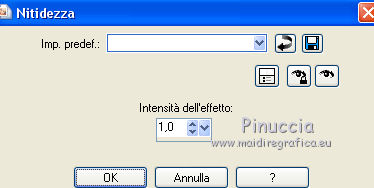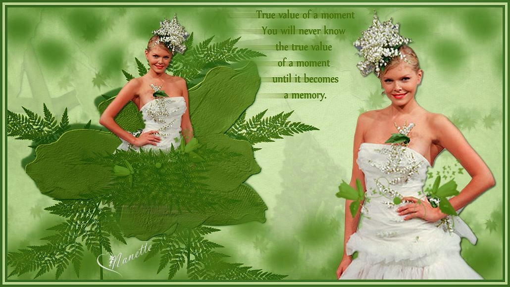 qui puoi trovare qualche risposta ai tuoi dubbi. Se l'argomento che ti interessa non è presente, ti prego di segnalarmelo. Per tradurre questo tutorial ho usato PSP X. Occorrente: Materiale qui Il tube della donna è di Grace. Gli altri tubes sono di Saskia Oldfashion. Filtri in caso di dubbi, ricorda di consultare la mia sezione filtri qui Xero - Porcelain qui AAA Frames - Foto Frame qui ![]() 1. Apri i tubes in PSP. 2. Apri una nuova immagine trasparente 1000 x 550 pixels. Selezione>Seleziona tutto. Apri il tube "background" e vai a Modifica>Copia. Torna al tuo lavoro e vai a Modifica>Incolla nella selezione. Selezione>Deseleziona. 3. Apri il tube "varens" e vai a Modifica>Copia. Torna al tuo lavoro e vai a Modifica>Incolla come nuovo livello. Spostalo in basso a sinistra.![]() 4. Apri il tube "bloem" e vai a Modifica>Copia. Torna al tuo lavoro e vai a Modifica>Incolla come nuovo livello. Spostalo al centro delle felci, vedi l'esempio sotto.5. Abbassa l'opacità di questo livello al 73%. ![]() 6. Apri il tube "blaadjes" e vai a Modifica>Copia. Torna al tuo lavoro e vai a Modifica>Incolla come nuovo livello. Lascialo come sta. Abbassa l'opacità di questo livello al 50%. ![]() 7. Apri "overlay" e vai a Modifica>Copia. Torna al tuo lavoro e vai a Modifica>Incolla come nuovo livello. Lascialo come sta. 8. Apri il tube piccolo della donna "klein vrouwen" e vai a Modifica>Copia. Torna al tuo lavoro e vai a Modifica>Incolla come nuovo livello. Spostalo a sinistra, sulla grande foglia.![]() 9. Effetti>Effetti 3D>Sfalsa ombra. ![]() 10. Apri il tube Grace's_TLC_Remedy4Love e vai a Modifica>Copia. Torna al tuo lavoro e vai a Modifica>Incolla come nuovo livello. Immagine>Ridimensiona, al 95%, tutti i livelli non selezionato. ![]() Spostalo in basso a destra.11. Effetti>Effetti 3D>Sfalsa ombra, con i settaggi precedenti. ![]() 12. Apri il tube "varens 1" e vai a Modifica>Copia. Torna al tuo lavoro e vai a Modifica>Incolla come nuovo livello. Spostalo a sinistra, sotto il tube della donna.13. Apri il tube " bloemenslinger1" e vai a Modifica>Copia. Torna al tuo lavoro e vai a Modifica>Incolla come nuovo livello. Spostalo sopra le felci.![]() 14. Apri il tube "bloemenslinger2" e vai a Modifica>Copia. Torna al tuo lavoro e vai a Modifica>Incolla come nuovo livello. Spostalo sotto la donna a destra.![]() 15. Apri il tube wordart e vai a Modifica>Copia. Torna al tuo lavoro e vai a Modifica>Incolla come nuovo livello. Spostalo in alto a destra, tra le felci e la donna.![]() 16. Immagine>Aggiungi bordatura, 5 pixels, simmetriche, colore #4a2a18. Immagine>Aggiungi bordatura, 5 pixels, simmetriche, colore #b2773f. Immagine>Aggiungi bordatura, 5 pixels, simmetriche, colore #4a2a18. 17. Regola>Rimozione disturbo in un passaggio. Regola>Messa a fuoco>Metti a fuoco. 18. Regola>Luminosità e contrasto>Luminosità e contrasto. ![]() 19. Regola>Luminosità e contrasto>Nitidezza. ![]() 20. Firma il tuo lavoro e salva in formato jpg. ![]() Merci Nanette. ![]() ![]() Se hai problemi o dubbi, o trovi un link non funzionante, o anche soltanto per un saluto, scrivimi. 13 Ottobre 2014 |