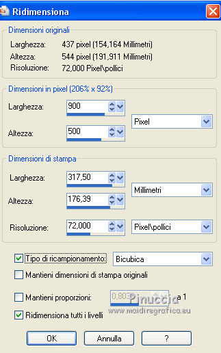 3. Immagine>Ridimensiona, 900 x 500 pixels, tutti i livelli selezionato,