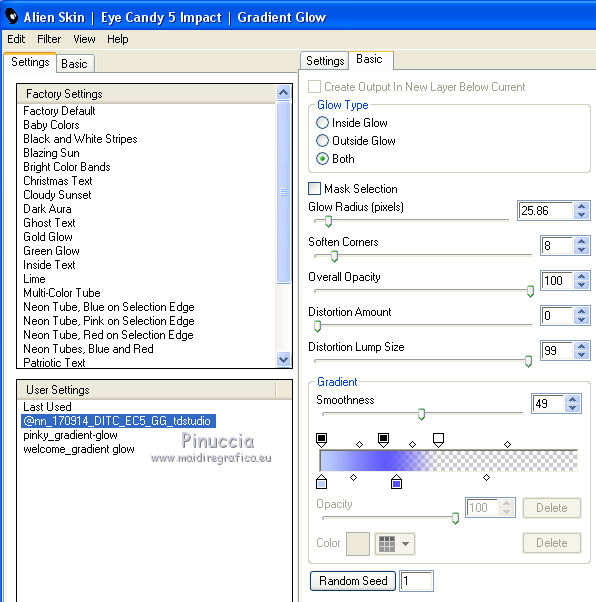 49. Effetti>Plugins>Alien Skin Eye Candy 5 Impact - Gradient Glow, con i settaggi precedenti: