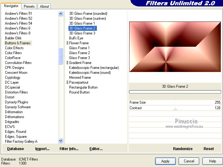 Effetti>Plugins>Filters Unlimited 2.0 - Buttons & Frames - 3D Glass Frame 2.