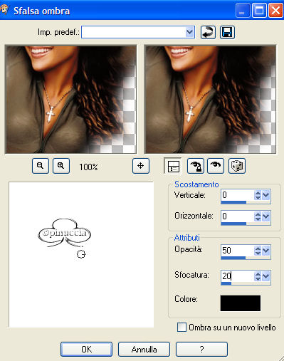 Effetti>Effetti 3D>Sfalsa ombra con i settaggi precjenniferti.
