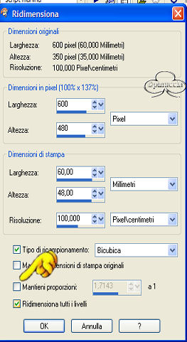 Immagine>Ridimensiona del 50%, bicubico, tutti i livelli non selezionato.