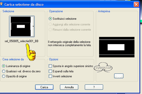 Selezione>Carica/Salva selezione>Carica selezione da disco. Cerca la selezione 001: