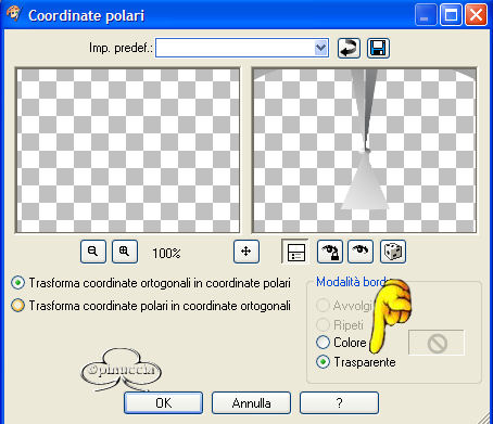 Effetti>Effetti di distorsione>Coordinate polari - da ortogonali a polari, trasparente.