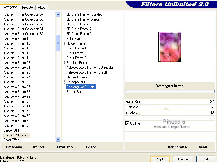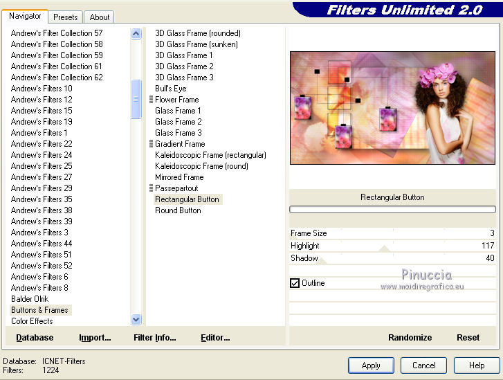 44. Effetti>Plugins>Filters Unlimited 2.0 - Buttons & Frames - Rectangular Button.