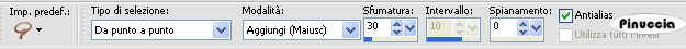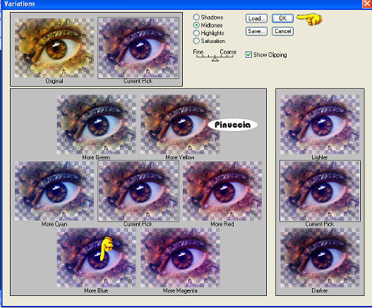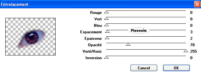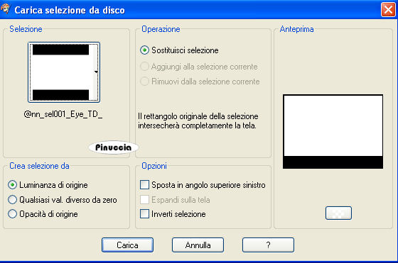qui puoi trovare qualche risposta ai tuoi dubbi. Se l'argomento che ti interessa non è presente, ti prego di segnalarmelo. Questo tutorial è stato scritto e tradotto con PSP X. Occorrente: Materiale qui Filtri: Jeux de lignes qui Xero - Porcelain qui Adjust - Variations qui Metti le maschere nella cartella Maschere. Metti la selezione nella cartella Selezioni. Apri il font e minimizzalo nella tua area di lavoro. Lo troverai nella lista dei font disponibili quando ti servirà. Apri una nuova immagine nera 640 x 480 pixels. Livelli>Nuovo livello raster. Selezione>Seleizona tutto. Apri Eye-image e vai a Modifica>Copia. torna al tuo lavoro e vai a Modifica>Incolla nella selezione. Selezione>Deseleziona. Livelli>Carica/Salva maschera>Carica maschera da disco. Cerca e carica la maschera dmsk0014: ![]() Livelli>Unisci>Unisci gruppo. Effetti>Adjust>Variations - clicca 4 volte su More Blue e poi ok. ![]() Livelli>duplica. Attiva lo strumento Selezione a mano libera , da punto a punto,sfumatura 30, spianamento 0: ![]() Seleziona l'occhio: quando avrai rilasciato il mouse la selezione si allargherà per effetto della sfumatura: ![]() Selezione>Inverti. Premi sulla tastiera il tasto CANC. Selezione>Deseleziona. Cambia la modalità di miscelatura di questo livello in Luce netta. Effetti>Plugins>Jeux de lignes - Entrelacement: ![]() Attiva il tube del leopardo. Elimina il livello del watermark. Livelli>Carica/Salva maschera>Carica maschera da disco. Cerca e carica la maschera 20-20 con i settaggi precedenti. ![]() Livelli>Unisci>Unisci gruppo. Modifica>Copia. Torna al tuo lavoro e vai a Modifica>Incolla come nuovo livello. Sposta il tube a destra, avvicinando gli occhi come nel mio esempio.![]() Cambia la modalità di miscelatura di questo livello in Luce netta. Apri il tube della donna e vai a Modifica>Copia. Torna al tuo lavoro e vai a Modifica>Incolla come nuovo livello. Immagine>Rifletti. Sposta il tube in alto a sinistra, vedi il mio esempio.Se vuoi, puoi posizionarlo contro il bordo. ![]() Abbassa l'opacità di questo livello intorno all'89%. Livelli>Unisci>Unisci visibile. Effetti>Plugins>Xero - Porcelain, con i settaggi standard. ![]() Livelli>Nuovo livello raster. Selezione>Carica/Salva selezione>Carica selezione da disco. Cerca e carica la selezione @nn_sel001_Eye. ![]() Riempi la selezione con il colore bianco.Selezione>Modifica>Contrai - 1 pixels. Premi sulla tastiera il tasto canc. Selezione>Deseleziona. Attiva lo strumento Testo , font Alien Encounters, dimensione 72, centrato, crea come vettore.![]() Imposta il bianco come colore di sfondo e chiudi il colore di primo piano. Scrivi un testo a tua scelta. Usando la griglia vettoriale allarga il testo, adattandolo allo spazio disponibile: ![]() Effetti>Effetti 3D>Sfalsa ombra, con i seguenti settaggi, colore nero. ![]() Abbassa l'opacità di questo livello all'80%. Immagine>Aggiungi bordatura, 1 pixel, simmetriche, con il colore bianco. Se vuoi, ridimensiona, ma non ridurre troppo la tag, perchè potrebbe perdere in qualità. Salva in formato jpg. ![]() Se hai problemi o dubbi, o trovi un link non funzionante, o anche soltanto per un saluto, scrivimi. 1 Settembre 2008 |