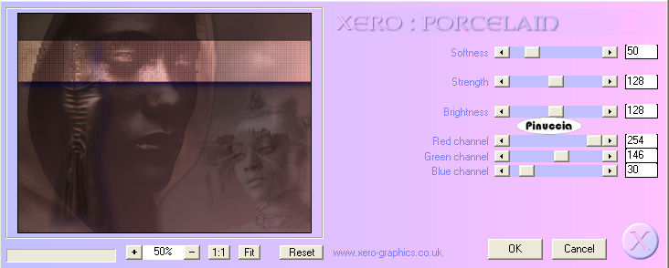 Effetti>Plugins>Xero - Porcelain, con i seguenti settaggi, e ripeti 3 volte: