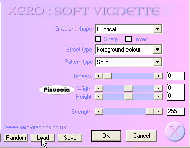 19. Effetti>Plugins>Xero - Soft Vignette: clicca Load, per caricare le impostazioni predefinite: