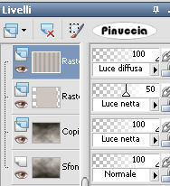 16. Nella paletta dei livelli cambia la modalità di miscelatura in Luce netta e abbassa l'opacità al 50%.