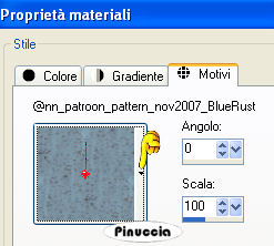 Passa il colore di primo piano a Motivi, seleziona il motivo @nn_patroon_pattern_nov2007_BlueRust.bmp, con i seguenti settaggi: