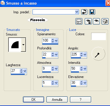 35. Effetti>Effetti 3D>Smusso a incasso, con i seguenti settaggi:
