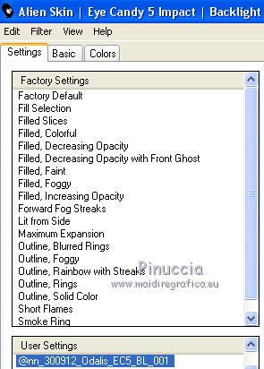 Metti i preset nelle cartelle del filtro Alien Skin Eye Candy 5 Impact>Settings>Glass/Backlight.