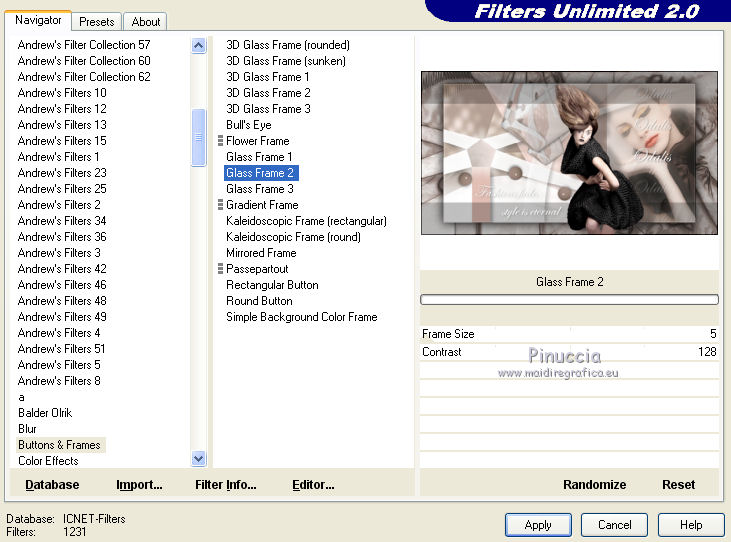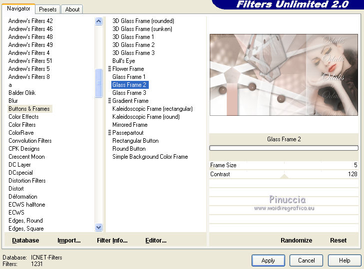 71. Effetti>Plugins>Filters Unlimited 2.0 - Buttons & Frames - Glass Frame 2, con i settaggi precedenti.
