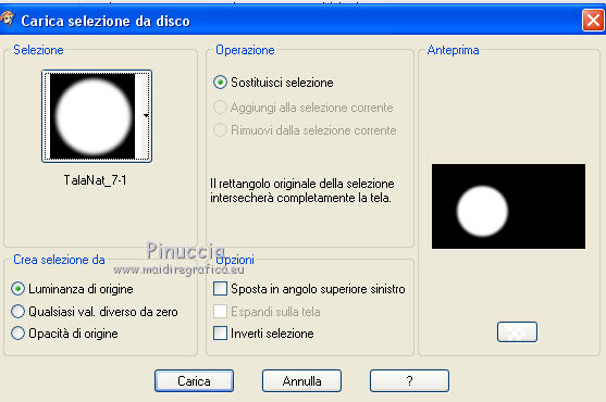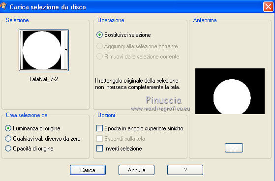 e seleziona la maschera TalaNat_Mask1-05-092013, con i seguenti settaggi:
