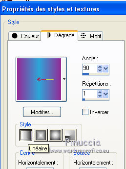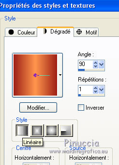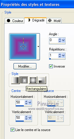 Ce tutoriel a été créé et traduit avec CorelX12, mais il peut également être exécuté avec les autres versions. Suivant la version utilisée, vous pouvez obtenir des résultats différents. Depuis la version X4, la fonction Image>Miroir a été remplacée par Image>Renverser horizontalement, et Image>Renverser avec Image>Renverser verticalement . Dans les versions X5 et X6, les fonctions ont été améliorées par la mise à disposition du menu Objets. Avec la nouvelle version X7, nous avons encore Image>Miroir et Image>Renverser/Retourner, mais avec nouvelles différences. Voir les détails à ce sujet ici Certaines dénominations ont changées entre les versions de PSP. Les plus frequentes dénominations utilisées: ![]() Vos versions iciNécessaire pour réaliser ce tutoriel: Un tube à choix Le reste du matériel ici Pour mon tube merci Isa. (le tube n'est pas dans le matériel: voici l'adresse où vous pouvez le trouver: http://tubesdisa.eklablog.com/fb0700-tube-femme-a130148608) Le reste du matériel est de Tati (ici les liens vers les sites des créateurs de tubes) Modules Externes: consulter, si nécessaire, ma section des filtres ici Filters Unlimited 2.0 ici °v° Kiwi's Oelfilter - 3.5 Promille ici &<Bkg Designer sf10I> - Cruncher (à importer dans Unlimited) ici &<Bkg Designers sf10IV> - <Lightburst...> (à importer dans Unlimited) ici AP [Lines] - Lines SilverLining ici Mehdi - Weaver ici Simple - Top Left Mirror ici Alien Skin Eye Candy 5 Impact - Glass ici Filtres Kiwi et Simple peuvent être utilisés seuls ou importés dans Filters Unlimited. voir comment le faire ici). Si un filtre est fourni avec cette icône, ![]() en fonction des couleurs utilisées, vous pouvez changer le mode mélange et l'opacité des calques. Dans les plus récentes versions de PSP, vous ne trouvez pas le dégradé d'avant plan/arrière plan ou Corel_06_029. Vous pouvez utiliser le dégradé des versions antérieures. Ici le dossier Dégradés de CorelX. Ouvrir les masques dans PSP et les minimiser avec le reste du matériel. Couleurs utilisées ![]() 1. Placer en avant plan la couleur 1 #9e2017. et en arrière plan la couleur 3 #ffcf4f. ![]() 2. Placer en avant plan un dégradé de premier plan/arrière plan (Corel_06_029), style Radial. ![]() 3. Ouvrir TD_Canal_Alfa_Be_Original.pspimage. Fenêtre>Dupliquer ou sur le clavier shift+D pour faire une copie. ![]() Fermer l'original. La copie, qui sera la base de votre travail, n'est pas vide, mais contient les sélections enregistrées sur le canal alpha. 4. Remplir l'image transparente du dégradé.5. Effets>Modules Externes>Filters Unlimited 2.0 - &<Bkg Designer sf10I> - Cruncher. ![]() 6. Répéter Effets>Modules Externes>Filters Unlimited 2.0 - &<Bkg Designer sf10I> - Cruncher. ![]() 7. Calques>Dupliquer. Fermer ce calque et vous positionner sur le calque de dessous, Raster 1. 8. Effets>Modules Externes>Filters Unlimited 2.0 - &<Bkg Designers sf10IV> - <Lightburst...> ![]() 9. Effets>Effets d'image>Mosaïque sans jointures. ![]() Réglage>Netteté>Netteté. 10. Re-ouvrir et vous positionner sur le calque de dessus Copie de Raster 1. Effets>Modules Externes>°v°Kiwi's Oelfilter - 3,5 Promille, par défaut ![]() 11. Effets>Effets géométriques>Inclinaison. ![]() 12. Effets>Effets de distorsion>Pixelisation. ![]() Effets>Effets de bords>Accentuer. 13. Effets>Effets de distorsion>Cintrage. ![]() 14. Effets>Effets d'image>Mosaïque sans jointures. ![]() 15. Effets>Effets 3D>Ombre portée, couleur d'avant plan #9e2017. ![]() Vous devriez avoir ceci ![]() 16. Effets>Modules Externes>Mehdi - Weaver. ![]() Réglage>Netteté>Netteté. 17. Placer en avant plan la couleur 5 #932b97, et en arrière plan la couleur 6 #2da6d7. ![]() Préparer en avant plan un dégradé de premier plan/arrière plan, style Rectangulaire. ![]() 18. Calques>Nouveau calque raster. Remplir le calque du dégradé.19. Effets>Effets de textures>Textile couleur du tissage: #ffffff ![]() Effets>Effets de bords>Accentuer. 20. Activer l'outil Sélection ![]() (peu importe le type de sélection, parce que avec la sélection personnalisée vous obtenez toujours un rectangle), cliquer sur Sélection personnalisée ![]() et setter ces paramètres. ![]() 21. Sélections>Modifier>Progressivité - 50 pixels ![]() 22. Sélections>Inverser. Presser CANC sur le clavier ![]() ![]() Sélections>Désélectionner tout. 23. Effets>Effets d'image>Mosaïque sans jointures. ![]() 24. Réduire l'opacité de ce calque à 50%. ![]() 25. Image>Miroir. Effets>Effets 3D>Ombre portée, couleur #ffffff. ![]() 26. Placer en avant plan la couleur 4 #fbecc5. ![]() 27. Calques>Nouveau calque raster. Remplir le calque avec la couleur d'avant plan #fbecc5.28. Calques>Nouveau calque de masque>A partir d'une image. Ouvrir le menu deroulant sous la fenêtre d'origine et vous verrez la liste des images ouvertes. Sélectionner le masque TD_Mask1_Be_Original. ![]() Calques>Fusionner>Fusionner le groupe. 29. Effets>Effets 3D>Ombre portée, couleur 1 #9e2017. ![]() 30. Sélections>Charger/Enregistrer une sélection>Charger à partir d'un canal alpha. La sélection TD_BeOriginal_Sel1 est déjà disponible. On doit seulement cliquer sur Charger. ![]() 31. Placer en avant plan la couleur 2 #ff964d. ![]() Calques>Nouveau calque raster. Remplir la sélection avec la couleur d'avant plan #ff964d.Sélections>Désélectionner tout. 32. Sélections>Charger/Enregistrer une sélection>Charger à partir d'un canal alpha. Ouvrir le menu des sélections et charger la sélection TD_BeOriginal_Sel2. ![]() 33. Effets>Modules Externes>AP [Lines] - Lines SilverLining. ![]() Sélections>Désélectionner tout. 34. Réduire l'opacité de ce calque à 50%. ![]() 35. Effets>Effets 3D>Ombre portée, comme précédemment. ![]() 36. Ouvrir le tube TD_Deco1_Be_Original - Édition>Copier. Revenir sur votre travail et Édition>Coller comme nouveau calque. 37. Touche K sur le clavier pour activer l'outil Sélecteur ![]() et placer Position horiz.: 9