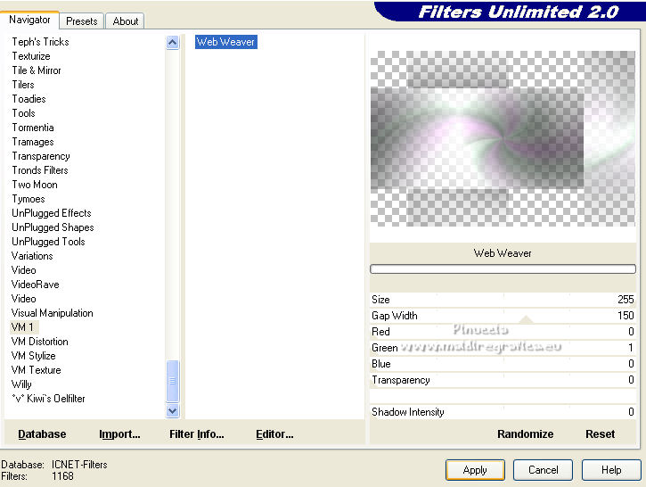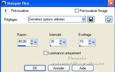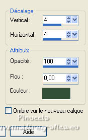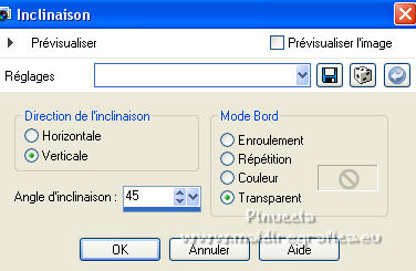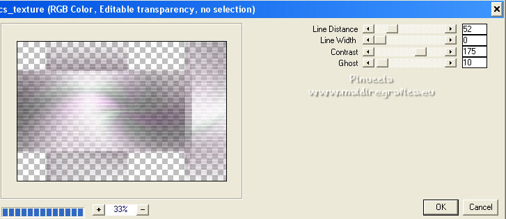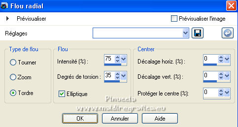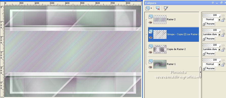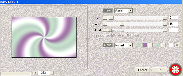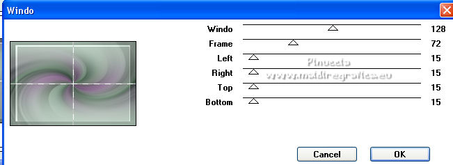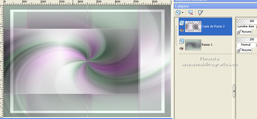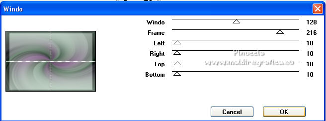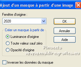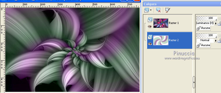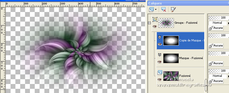 Ce tutoriel a été créé et traduit avec CorelX12, mais il peut également être exécuté avec les autres versions. Suivant la version utilisée, vous pouvez obtenir des résultats différents. Depuis la version X4, la fonction Image>Miroir a été remplacée par Image>Renverser horizontalement, et Image>Renverser avec Image>Renverser verticalement . Dans les versions X5 et X6, les fonctions ont été améliorées par la mise à disposition du menu Objets. Avec la nouvelle version X7, nous avons encore Image>Miroir et Image>Renverser/Retourner, mais avec nouvelles différences. Voir les détails à ce sujet ici Certaines dénominations ont changées entre les versions de PSP. Les plus frequentes dénominations utilisées: ![]() Vos versions ici![]() Nécessaire pour réaliser ce tutoriel: Un tube à choix. Le reste du matériel ici Pour les tubes utilisés, merci Mina et Maryse. Le reste du matériel est de Tati. (ici les liens vers les sites des créateurs de tubes) Modules Externes: consulter, si nécessaire, ma section des filtres ici Filters Unlimited 2.0 ici Mehdi - Wavy Lab 1.1. ici Mock - Windo ici VM 1 - Web Weaver ici Carolaine and Sensibility - CS_Texture ici Simple - Top Left Mirror ici Alien Skin Eye Candy 5 Impact - Perspective Shadow ici Filtres Factory Gallery peuvent être utilisés seuls ou importés dans Filters Unlimited. voir comment le faire ici). Si un filtre est fourni avec cette icône, ![]() en fonction des couleurs utilisées, vous pouvez changer le mode mélange et l'opacité des calques. Dans les plus récentes versions de PSP, vous ne trouvez pas le dégradé d'avant plan/arrière plan ou Corel_06_029. Vous pouvez utiliser le dégradé des versions antérieures. Ici le dossier Dégradés de CorelX. Ouvrir les masques dans PSP et les minimiser avec le reste du matériel. Choisir des couleurs en fonction de votre tube. Ci-dessous la palette des couleurs ![]() 1. Placer en avant plan la couleur 1 #a477a9, et en arrière plan la couleur 2 #c4d7ca. ![]() 2. Ouvrir l'image Back_Abstract_Flower. Fenêtre>Dupliquer ou sur le clavier shift+D pour faire une copie. ![]() Fermer l'original. La copie sera la base de votre travail. 3. Calques>Transformer le calque d'arrière plan. Placer le calque en mode Luminance (héritée) Ne vous inquiètez pas si vous avez un seul calque 4. Calques>Nouveau calque raster. Effets>Modules Externes>Mehdi - Wavy Lab 1.1. Ce filtre crée des dégradés avec les couleurs de votre palette: la première est la couleur d'arrière plan, la deuxième est la couleur d'avant plan. Changer les autres deux couleurs créées par le filtre: la troisième avec la couleur d'arrière plan #c4d7ca et la quatrième avec la couleur #ffffff ![]() 5. Calques>Agencer>Placer en bas de la pile ![]() 6. Calques>Fusionner>Calques visibles. 7. Calques>Nouveau calque de masque>A partir d'une image. Ouvrir le menu deroulant sous la fenêtre d'origine et vous verrez la liste des images ouvertes. Sélectionner le masque 2020. ![]() Calques>Dupliquer. ![]() Calques>Fusionner>Fusionner le groupe. 8. Réglage>Netteté>Masque Flou. ![]() 9. Édition>Copier. 10. Ouvrir une nouvelle image transparente 900 x 600 pixels. Remplir l'image transparente avec la couleur d'arrière plan #c4d7ca.11. Calques>Nouveau calque raster. Sélections>Sélectionner tout. Édition>Coller dans la sélection. Sélections>Désélectionner tout. 12. Effets>Effets d'image>Mosaïque sans jointures. ![]() 13. Réglage>Flou>Flou radial. ![]() 14. Calques>Dupliquer. Fermer ce calque et vous positionner sur le calque de dessous, Raster 2. Calques>Fusionner>Fusionner le calque de dessous. 15. Effets>Modules Externes>Mock - Windo ![]() 16. Effets>Modules Externes>Mock - Windo ![]() 17. Re-ouvrir et vous positionner sur le calque de dessus, Copie de Raster 2. Effets>Modules Externes>Filters Unlimited 2.0 - VM 1 - Web Weaver. ![]() Effets>Effets de bords>Accentuer. 18. Effets>Effets 3D>Ombre portée, couleur 3 #7e5975. ![]() 19. Effets>Modules Externes>CS_Texture, par défaut. ![]() 20. Placer le calque en mode Lumière dure. ![]() 21. Calques>Dupliquer. Effets>Effets géométriques>Inclinaison. ![]() 22. Effets>Effets d'image>Mosaïque sans jointures, comme précédemment. ![]() 23. Calques>Nouveau calque de masque>A partir d'une image. Ouvrir le menu deroulant sous la fenêtre d'origine et vous verrez la liste des images ouvertes. Sélectionner le masque TD_Mask_Butterflies. ![]() Calques>Fusionner>Fusionner le groupe. 24. Calques>Nouveau calque raster. Activer l'outil Sélection ![]() (peu importe le type de sélection, parce que avec la sélection personnalisée vous obtenez toujours un rectangle), cliquer sur Sélection personnalisée ![]() et setter ces paramètres. ![]() 25. Effets>Effets 3D>Ombre portée, couleur 4 #325038. ![]() 26. Placer en avant plan la couleur #ffffff. Remplir la sélection avec la couleur #ffffff.27. Sélections>Modifier>Contracter - 2 pixels. Presser CANC sur le clavier ![]() 28. Réduire l'opacité de l'outil Pot de Peinture à 50 ![]() Remplir la sélection avec la couleur #ffffff.Placer à nouveau l'opacité de l'outil Pot de peinture à 100. 29. Sélections>Modifier>Contracter - 20 pixels. Remplir la sélection avec la couleur #ffffff.30. Sélections>Modifier>Contracter - 1 pixel. Remplir la sélection avec la couleur d'arrière plan #c4d7ca.Sélections>Désélectionner tout. 31. Effets>Effets d'image>Mosaïque sans jointures, comme précédemment. ![]() 32. Sélection personnalisée ![]() ![]() 33. Placer en avant plan la couleur du début #a477a9, et garder en arrière plan la couleur #c4d7ca. ![]() Préparer en avant plan un dégradé de premier plan/arrière plan, style Linéaire ![]() 34. Calques>Nouveau calque raster. Remplir la sélection du dégradé.35. Effets>Effets artistiques>Émail - couleur 4 #325038. ![]() Sélections>Désélectionner tout. 36. Effets>Effets d'image>Mosaïque sans jointures, comme précédemment. ![]() 37. Calques>Fusionner>Fusionner le c