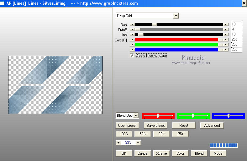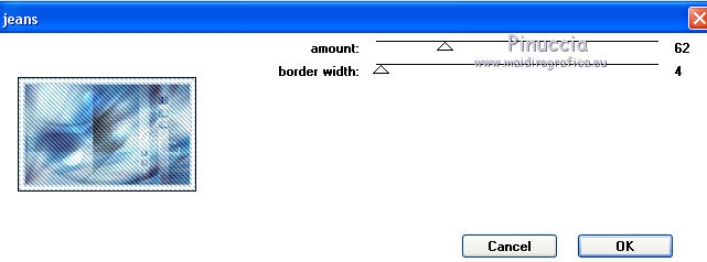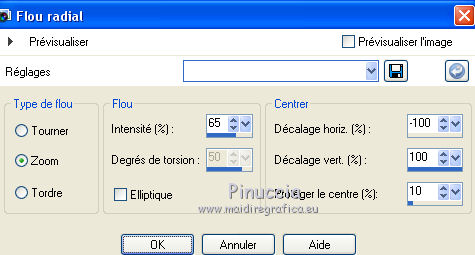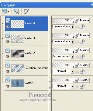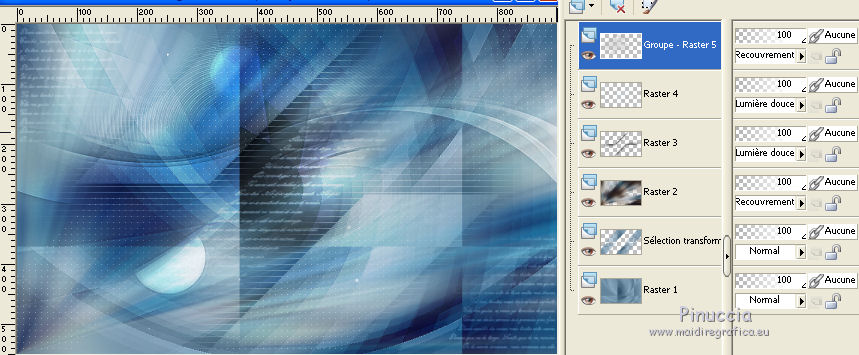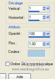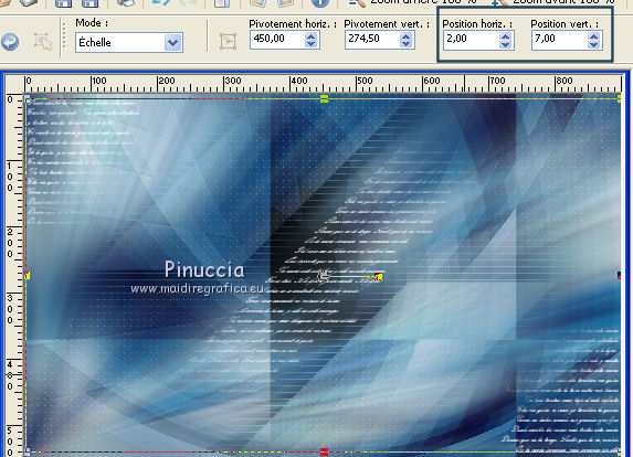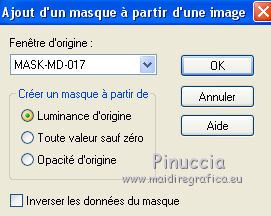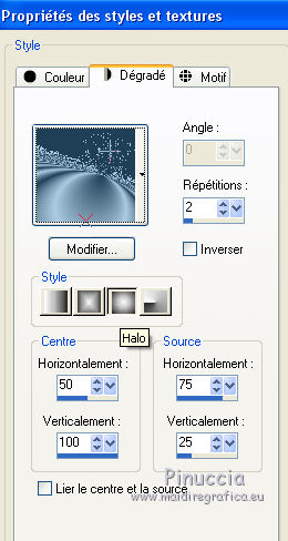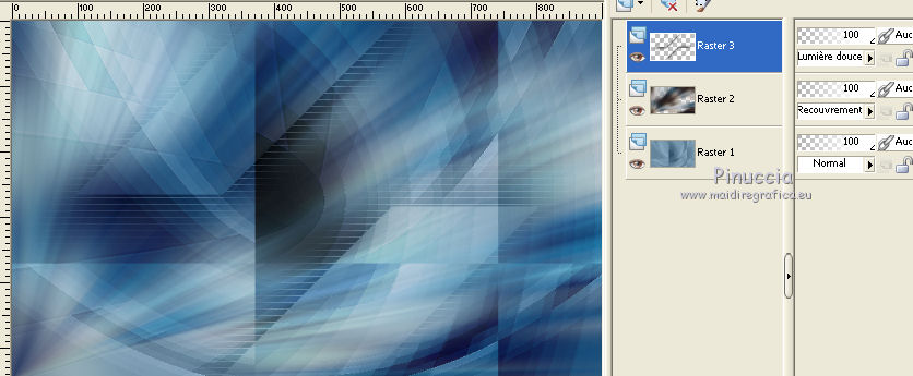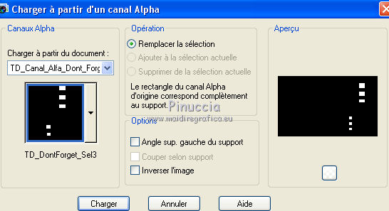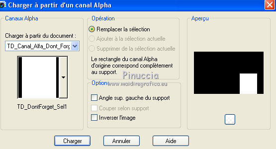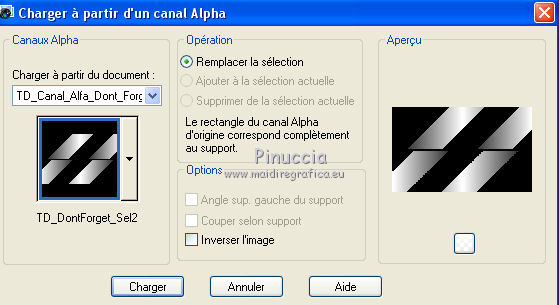 Ce tutoriel a été créé et traduit avec CorelX12, mais il peut également être exécuté avec les autres versions. Suivant la version utilisée, vous pouvez obtenir des résultats différents. Depuis la version X4, la fonction Image>Miroir a été remplacée par Image>Renverser horizontalement, et Image>Renverser avec Image>Renverser verticalement . Dans les versions X5 et X6, les fonctions ont été améliorées par la mise à disposition du menu Objets. Avec la nouvelle version X7, nous avons encore Image>Miroir et Image>Renverser/Retourner, mais avec nouvelles différences. Voir les détails à ce sujet ici Certaines dénominations ont changées entre les versions de PSP. Les plus frequentes dénominations utilisées: ![]() Vos versions ici![]() Nécessaire pour réaliser ce tutoriel: Matériel ici Pour le tube et le masque merci Beatriz et Maëlle. Le reste du matériel est de Tati (ici les liens vers les sites des créateurs de tubes) Modules Externes: consulter, si nécessaire, ma section des filtres ici Filters Unlimited 2.0 ici &<Bkg Kaleidoscope> - Kaleidoscope 5 (à importer dans Unlimited) ici Filter Factory Gallery H - Alias Blur ici AFS [IMPORT] - BUGEYE ici AP [Lines] - Lines SilverLining ici Alien Skin Eye Candy 5 Impact - Glass ici Penta.com - Jeans ici Filtres Factory Gallery, AFS IMPORT et Penta.com peuvent être utilisés seuls ou importés dans Filters Unlimited. voir comment le faire ici). Si un filtre est fourni avec cette icône, ![]() en fonction des couleurs utilisées, vous pouvez changer le mode mélange et l'opacité des calques. Dans les plus récentes versions de PSP, vous ne trouvez pas le dégradé d'avant plan/arrière plan ou Corel_06_029. Vous pouvez utiliser le dégradé des versions antérieures. Ici le dossier Dégradés de CorelX. Ouvrir le masque dans PSP et le minimiser avec le reste du matériel. 1. Placer en avant plan la couleur 2 #204058, et en arrière plan la couleur 1 #aacbe2. ![]() 2. Préparer en avant plan un dégradé de premier plan/arrière plan, style Halo. ![]() 3. Ouvrir TD_Canal_Alfa_Dont_Forget". Fenêtre>Dupliquer ou sur le clavier shift+D pour faire une copie. ![]() Fermer l'original. La copie, qui sera la base de votre travail, n'est pas vide, mais contient les sélections enregistrées sur le canal alpha. Remplir l'image transparente du dégradé.4. Calques>Dupliquer. Effets>Modules Externes>Filters Unlimited 2.0 - &<Bkg Kaleidoscope - Kaleidoscope 5, par défaut. ![]() 5. Image>Miroir. Réduire l'opacité de ce calque à 50%. ![]() Calques>Fusionner>Fusionner le calque de dessous. 6. Réglage>Flou>Flou radial. ![]() 7. Effets>Modules Externes>Filters Unlimited 2.0 - Filter Factory Gallery H - Alias Blur, par défaut. ![]() Effets>Effets de bords>Accentuer. 8. Effets>Modules Externes>Filters Unlimited 2.0 - &AFS IMPORT] - BUGEYE ![]() 9. Calques>Nouveau calque raster. Sélections>Sélectionner tout. Ouvrir le tube 2569-woman-LBTUBES" - Édition>Copier. Revenir sur votre travail et Édition>Coller dans la sélection. note: si vous utilisez un autre tube, essayez d'en choisir un avec une couleur claire ou blanche, de sorte qu'il ne soit pas trop sombre Sélections>Désélectionner tout. 10. Effets>Effets d'image>Mosaïque sans jointures, par défaut. ![]() 11. Réglage>Flou>Flou radial, comme précédemment. ![]() 12. Placer le calque en mode Recouvrement ou Lumière dure (en fonction de ta couleur d'arrière plan et du tube choisi). 13. Calques>Nouveau calque raster. Sélections>Charger/Enregistrer une sélection>Charger à partir d'un canal alpha. La sélection TD_DontForget_Sel1" est déjà disponible. On doit seulement cliquer sur Charger. ![]() 14. Effets>Effets 3D>Ombre portée, couleur noire. ![]() Sélections>Désélectionner tout. 15. Calque>Dupliquer. Image>Miroir. Image>Renverser. Calques>Fusionner>Fusionner le calque de dessous. 16. Effets>Effets géométriques>Inclinaison. ![]() 17. Effets>Modules Externes>AP [Lines] - Lines SilverLining. ![]() Placer le calque en mode Lumière douce. ![]() 18. Vous positionner sur le calque du bas de la pile, Raster 1. Sélections>Charger/Enregistrer une sélection>Charger à partir d'un canal alpha. Ouvrir le menu des sélections et charger la sélection TD_DontForget_Sel2. ![]() Sélections>Transformer la sélection en calque. Sélections>Désélectionner tout. 19. Effets>Modules Externes>AP [Lines] - Lines SilverLining. ![]() 20. Édition>Copie Spéciale>Copier avec fusion. Édition>Coller comme nouvelle image, et minimiser cette image pour le moment. 21. Revenir sur votre travail. Vous positionner sur le calque du haut de la pile. Ouvrir le tube Td_Texto_Dont_Forget et Édition>Copier. Revenir sur votre travail et Édition>Colle comme nouveau calque. 22. Touche K sur le clavier pour activer l'outil Sélecteur ![]() et placer Position horiz.: 2,00 et Position vert.:7,00. ![]() Touche M pour désélectionner l'outil. 23. Placer le calque en mode Lumière douce. ![]() 24. Effets>Effets 3D>Ombre portée, couleur d'arrière plan #aacbe2. ![]() 25. Placer en avant plan la couleur #ffffff. Calques>Nouveau calque raster. Remplir le calque avec la couleur blanche.26. Calques>Nouveau calque de masque>A partir d'une image. Ouvrir le menu deroulant sous la fenêtre d'origine et vous verrez la liste des images ouvertes. Sélectionner le masque MASK-MD-017. ![]() Calques>Dupliquer. ![]() Calques>Fusionner>Fusionner le groupe. 27. Image>Renverser. Réglage>Netteté>Netteté. 28. Effets>Effets 3D>Ombre portée, couleur noire. ![]() Placer le calque en mode Recouvrement. ![]() 29. Ouvrir le tube TD_Deco1_Dont_Forget - Édition>Copier. Revenir sur votre travail et Édition>Coller comme nouveau calque. 30. Touche K pour activer l'outil Sélecteur ![]() et placer Position horiz.: 624,00 et garder Position vert.: 0,00. ![]() Touche M pour désélectionner l'outil. 31. Sélections>Charger/Enregistrer une sélection>Charger à partir d'un canal alpha. Ouvrir le menu des sélections et charger la