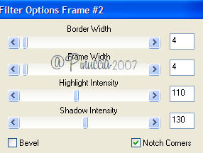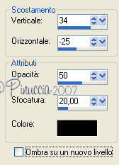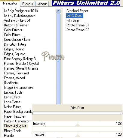 qui puoi trovare qualche risposta ai tuoi dubbi. Se l'argomento che ti interessa non è presente, ti prego di segnalarmelo. Questo tutorial è stato creato con PSP 9, ma può essere eseguito anche con le altre versioni di PSP. Occorrente: Materiale qui Nello zip trovi i tubes: pearl, chrystal_Flower158-1, Pearls_on_redSatin. il pennello "dreamscape" (apri il file in PSP ed esportalo come pennello personalizzato: come fare vedi qui), Ti servirà anche la maschera 20-20 (da mettere nella cartella Maschere). Se non ce l'hai prendila qui Filtri: Xero qui PhotoEffex Scanlines qui Photo Aging Kit qui (da importare in Filters Unlimited 2.0: come fare vedi qui), Filters Unlimited 2.0 qui Bordermania qui 1. Imposta il colore di primo piano con #710b07. Apri una nuova immagine trasparente 650 x 450 pixels, e riempila con il colore di primo piano.Selezione>Seleziona tutto. Livelli>Nuovo livello raster. Apri il tube chrystal_Flower158-1, e vai a Modifica>Copia. Modifica>Incolla>Incolla come nuova IMMAGINE. Immagine>Rifletti. Livelli>Carica/Salva maschera>Carica maschera da disco: cerca e carica la maschera 20-20. ![]() Livelli>Unisci>Unisci gruppo. Modifica>Copia. Torna al tuo lavoro e vai a Modifica>Incolla>Incolla nella selezione. Selezione>Nessuna selezione. Cambia la modalità di miscelatura di questo livello in Luce diffusa, e abbassa l'opacità al 70%. Livelli>Unisci>Unisci tutto. 2. Effetti>Plugins>PhotoEffex - Scanlines, con i settaggi standard: ![]() Effetti>Plugins>Filters Unlimited - Photo Aging Kit - Dirt & Dust, con i settaggi standard: ![]() ![]() 3. Livelli>Nuovo livello raster. Imposta il colore di sfondo con #f8efd0. Attiva lo strumento Pennello ![]() cerca e seleziona il pennello Dreamscape, dimensione 440, e applicalo cliccando con il tasto destro del mouse, per usare il colore di sfondo, a sinistra dell'immagine, vedi il mio esempio. ![]() 4. Apri il tube Pearls_on_redSatin, e vai a Modifica>Copia. Torna al tuo lavoro e vai a Modifica>Incolla>Incolla come nuovo livello. Immagine>Ridimensiona, all'80%, ricampionamento bicubica, tutti i livelli non selezionato. ![]() Immagine>Rifletti. Sposta il tube a destra.Effetti>Effetti 3D>Sfalsa ombra, con i seguenti settaggi: la selezione su "ombra su nuovo livello" è una mia iniziativa; decidi tu se fare altrettanto. ![]() Effetti>Plugins>Xero - Mistifier, con i settaggi standard: ![]() ![]() 5. Livelli>Unisci>Unisci tutto. Immagine>Aggiungi bordatura, 1 pixel, simmetriche, con il colore #510907. Immagine>Aggiungi bordatura, 2 pixels, simmetriche, con il colore #710b07. Immagine>Aggiungi bordatura, 1 pixel, simmetriche, con il colore #510907. Immagine>Aggiungi bordatura, 60 pixels, simmetriche, con il colore bianco. Seleziona il bordo bianco con la bacchetta magica ![]() ![]() Riempi la selezione con il colore di primo piano.Effetti>Plugins>PhotoEffex Scanlines, con i settaggi precedenti. Effetti>Plugins>Filters Unlimited - Photo Aging Kig - Dirt & Dust, con i settaggi precedenti. Selezione>Inverti. Effetti>Effetti 3D>Sfalsa ombra: ![]() Selezione>Nessuna selezione. 6. Apri il tube Pearl e vai a Modifica>Copia. Torna al tuo lavoro e vai a Modifica>Incolla>Incolla come nuovo livello. Sposta il tube come nel mio esempio, sopra il bordo dell'immagine interna.![]() Livelli>Duplica. Immagine>Ruota>Ruota per gradi, 90 gradi a sinistra: ![]() Sposta il tube duplicato contro il bordo a destra nell'immagine interna.Attiva lo strumento Gomma ![]() e cancella la perla (o le perle, dipende da come hai posizionato il tube), al di fuori del bordo. Puoi ottenere lo stesso risultato con lo strumento Selezione ,selezionando quello che devi cancellare e poi premendo sulla tastiera il tasto canc. ![]() Livelli>Unisci>Unisci tutto. 7. Selezione>Seleziona tutto. Selezione>Modifica>Contrai, di 6 pixels. Selezione>Inverti. Riempi con il colore #510907.Selezione>Seleziona tutto. Selezione>Modifica>Contrai, di 4 pixels. Selezione>Inverti. Riempi con #710b07.Selezione>Seleziona tutto. Selezione>modifica>Contrai, di 2 pixels, Selezione>Inverti. Riempi con #510907.Selezione>Nessuna selezione. Effetti>Plugins>Bordermania - Frame #2. ![]() Ripeti una seconda volta con gli stessi settaggi. Aggiungi il tuo nome e/o il tuo watermark. Immagine>Ridimensiona, a 600-650 pixels di larghezza, ricampionamento dimensionamento ottimale: ![]() Salva in formato jpg. Per l'esempio sotto, ho usato un tube di Patry. ![]() ![]() Se hai problemi o dubbi, o trovi un link non funzionante, o anche soltanto per un saluto, scrivimi. 11 Settembre 2007 |