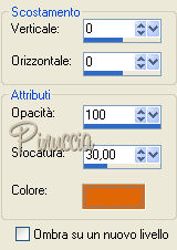 Effetti>Effetti 3D>Sfalsa ombra, con i seguenti settaggi, colore #e16604.