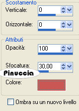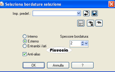 qui puoi trovare qualche risposta ai tuoi dubbi. Se l'argomento che ti interessa non è presente, ti prego di segnalarmelo. Questo tutorial è stato scritto con PSP 9, ma può essere eseguito anche con le altre versioni di PSP. Occorrente: il misted di un viso (anche normale, se preferisci, e non troppo piccolo), il tube di un corpo, un tube decorazione (farfalla, fiore...). 2 font. la selezione One-woman qui Filtro: Penta.com qui 1. Apri una nuova immagine BIANCA 700 x 500 pixels. Apri il tuo tube del corpo e vai a Modifica>Copia. Torna al tuo lavoro e vai a Modifica>Incolla>Incolla come nuovo livello. Spostalo a destra. Ridimensionalo, se necessario.Abbassa l'opacità di questo livello intorno al 70%, a seconda del tube che hai scelto. 2. Apri il tube del viso e vai a Modifica>Copia. Torna al tuo lavoro e vai a Modifica>Incolla>Incolla come nuovo livello. Sposta il tube a sinistra.Se necessario, ridimensiona. Livelli>Unisci>Unisci visibile. 3. Livelli>Nuovo livello raster. Scegli un colore chiaro e riempi il livello con questo colore (io ho scelto #d5a0a8).Cambia la modalità di miscelatura di questo livello in Sovrapponi. Livelli>Unisci>Unisci visibile. 4. Livelli>Nuovo livello raster. Selezione>Carica/Salva selezione>Carica selezione da disco. Cerca e carica la selezione "one woman": ![]() ![]() Selezione>inverti. Riempi con il bianco.Abbassa l'opacità di questo livello al 40%. Effetti>Plugins>Penta.com - Color dot, con i seguenti settaggi: ![]() Selezione>Inverti. Selezione>modifica>Seleziona bordature selezione. ![]() Livelli>Nuovo livello raster. Riempi con il bianco.Selezione>Deseleziona. 5. Chiudi il livello di sfondo, posizionati su uno degli altri due livelli e vai a Livelli>Unisci>Unisci visibile. Apri il livello inferiore e ancora Livelli>Unisci>Unisci visibile. 6. Livelli>Duplica. Immagine>Ridimensiona, al 30%, tutti i livelli non selezionato. ![]() Regola>Messa a fuoco>Metti a fuoco. Sposta la piccola immagine entro il bordo interno.Livelli>Duplica. Immagine>Rifletti. Sposta la seconda piccola immagine sotto la precedente.attenzione, spostando le due piccole immagini, potresti non trovarti sul livello corretto; prima del prossimo passaggio assicurati di essere posizionato sul livello superiore. Livelli>Unisci>Unisci giù. Effetti>Effetti 3D>Sfalsa ombra, con i seguenti settaggi, con un colore medio della tua immagine. ![]() 7. Imposta il colore che hai scelto per l'effetto ombra come colore di sfondo e chiudi il colore di primo piano. Attiva lo strumento Testo ![]() scegli un bel font e scrivi il tuo testo, come vettore. Livelli>Converti in livello raster. Posiziona il testo, o i testi, dove preferisci. 8. Livelli>Unisci>Unisci tutto. Immagine>Aggiungi bordatura, 1 pixel, simmetriche, con il colore che hai usato per il testo. Immagine>Aggiungi bordatura, 25 pixels, simmetriche, con il colore bianco. Se vuoi, aggiungi dei piccoli tube per decorare la tua immagine. Nel caso: Effetti>Effetti 3D>Sfalsa ombra, con i settaggi precedenti. Aggiungi il tuo nome e/o il tuo watermark. Livelli>Unisci>Unisci tutto. Immagine>Ridimensiona, a 650 pixels (o quello che preferisci), e salva in formato jpg. ![]() ![]() ![]() Se hai problemi o dubbi, o trovi un link non funzionante, o anche soltanto per un saluto, scrivimi. 15 Marzo 2008 |