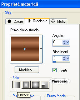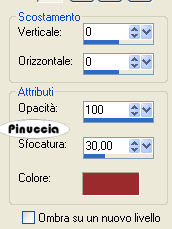 qui puoi trovare qualche risposta ai tuoi dubbi. Se l'argomento che ti interessa non è presente, ti prego di segnalarmelo. Questo tutorial è stato creato con PSP 9, ma può essere eseguito anche con le altre versioni di PSP. Occorrente: Materiale qui Nello zip trovi: i tubes MarieL_2006_09Septembre_Navi02t, MarieL_09Septembre_PD01t e Snakerand8, il pennello Marnie (mettilo nella cartella Pennelli), la trama 028 di Ti servirà anche la maschera 20-20 qui Filtri: FM Tile Tools qui Penta.com qui Bordermania qui 1. Apri una nuova immagine trasparente 700 x 500 pixels. Imposta il colore di primo piano con #ba7c55, e il colore di sfondo con #5e2b13. Passa il colore di primo piano a Gradiente di primo piano/sfondo, con i seguenti settaggi: ![]() 2. Riempi l'immagine trasparente con il gradiente.Regola>Sfocatura>Sfocatura gaussiana, raggio 10. ![]() Selezione>Seleziona tutto. Livelli>Nuovo livello raster. Apri la Texture028 e vai a Modifica>Copia. non chiudere la trama, perchè ti servirà ancora. Torna al tuo lavoro e vai a Modifica>Incolla>Incolla nella selezione. Cambia la modalità di miscelatura di questo livello in Luce netta. Selezione>Nessuna selezione. Effetti>Plugins>FM Tile Tools - Blend Emboss, con i settaggi standard. ![]() Abbassa l'opacità di questo livello al 60%. 3. Apri il tube MarieL_09Septembre_PD01t, e vai a Modifica>copia. Torna al tuo lavoro e vai a Modifica>Incolla>Incolla come nuovo livello. Livelli>Carica/Salva maschera>Carica maschera da disco: cerca e carica la maschera 20-20: ![]() Livelli>Unisci>Unisci gruppo. Cambia la modalità di miscelatura di questo livello in Luminanza (esistente), e abbassa l'opacità al 60%. Sposta questo tube in alto a destra.Effetti>Plugins>FM Tile Tools - Blend Emboss, con i settaggi standard. ![]() 4. Apri il tube MarieL_2006_09Septembre_Navi02t. Immagine>Ridimensiona, al 130%, tutti i livelli non selezionato. ![]() Sposta il tube a sinistra, contro il bordo, vedi il mio esempio.Regola>Messa a fuoco>Metti a fuoco. Abbassa l'opacità di questo livello al 50%. Effetti>Plugins>FM Tile Tools - Blend Emboss, con i settaggi standard. Livelli>Unisci>Unisci visibile. 5. Livelli>Nuovo livello raster. Selezione>Seleziona tutto. Attiva la Textuur028 e vai a Modifica>Copia. Torna al tuo lavoro e vai a Modifica>Incolla>Incolla nella selezione. Cambia la modalità di miscelatura di questo livello in Luce netta, e abbassa l'opacità al 70%. Selezione>Nessuna selezione. Effetti>Plugins>FM Tile Tools - Blend Emboss, con i settaggi standard. Livelli>Unisci>Unisci visibile. 6. Effetti>Plugins>Penta.com - Jeans, con i seguenti settaggi: ![]() ![]() Imposta il colore di primo piano con #ffd0ba. Livelli>Nuovo livello raster. Attiva lo strumento Pennello ![]() cerca e seleziona il pennello "Marnie", dimensione 400, applicalo a destra sotto gli occhi, a destra del tube (vedi il mio esempio). Clicca due-tre volte. Cambia la modalità di miscelatura di questo livello in Luce netta. Livelli>Unisci>Unisci tutto. 7. Livelli>Duplica. Immagine>Ridimensiona, all'85%, ricampionamento ottimale, tutti i livelli non selezionato. ![]() Duplica questo livello due volte. Attiva il livello inferiore dei livelli ridimensionati. Immagine>Ruota>Ruota per gradi, 7 gradi a sinistra: ![]() Effetti>Effetti 3D>Sfalsa ombra, con i seguenti settaggi, colore #9b2b2d. ![]() Attiva il livello centrale dei livelli ridimensionati. Immagine>Ruota>Ruota per gradi, 7 gradi a destra: ![]() Effetti>Effetti 3D>Sfalsa ombra, con i settaggi precedenti. Attiva il livello superiore e ripeti l'Effetto Sfalsa ombra, con i settaggi precedenti. 8. Apri il tube Snakerand8. Regola>Saturazione e tonalità>Viraggio: ![]() Modifica>Copia. Torna al tuo lavoro e vai a Modifica>Incolla>Incolla come nuovo livello. Sposta il tube sul bordo a destra.Cambia la modalità di miscelatura di questo livello in Luce netta. Livelli>Duplica. Immagine>Rifletti. Livelli>Unisci>Unisci tutto. Immagine>Aggiungi bordatura, 1 pixel, simmetriche, con il colore #9b2b2d. Effetti>Plugins>Bordermania - Frame #2: ![]() Ripeti l'Effetto Bordermania una seconda volta con gli stessi settaggi. Ridimensiona il blenda a 650-700 pixels, dimensione ottimale, tutti i livelli selezionati. Firma il tuo blend e salva in formato jpg. ![]() Se hai problemi o dubbi, o trovi un link non funzionante, o anche soltanto per un saluto, scrivimi. 2 Settembre 2007 |