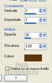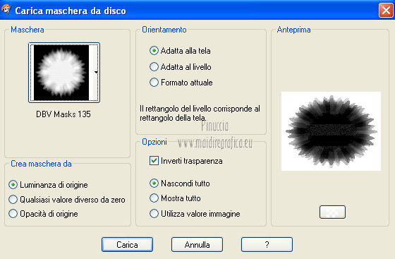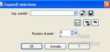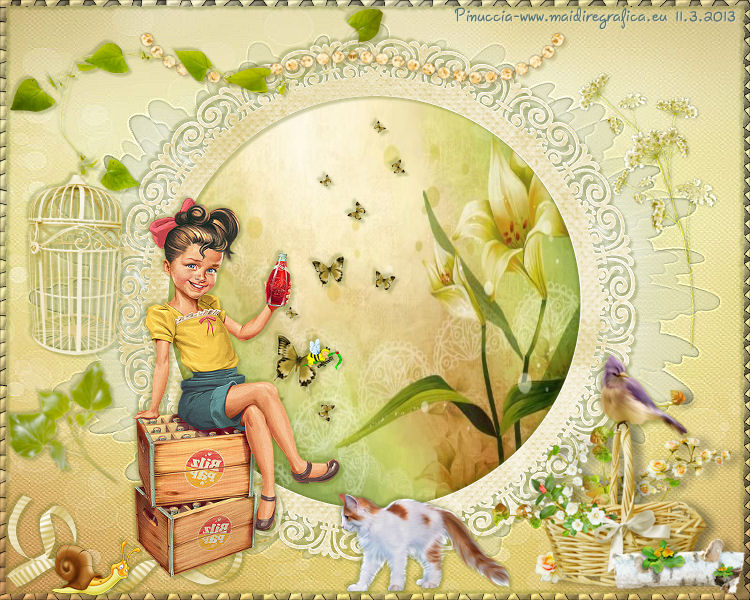 qui puoi trovare qualche risposta ai tuoi dubbi. Se l'argomento che ti interessa non è presente, ti prego di segnalarmelo. Per tradurre questo tutorial ho usato PSP X. Questo tutorial è una creazione di ©Titoune e non può essere copiato su altri siti nè essere offerto per il download. Lo stesso vale per la mia traduzione. Il tutorial è stato creato con PSP X5, ma può essere eseguito anche con le altre versioni di PSP. Seguendo versioni precedenti a PSP X si possono ottenere risultati differenti. Per tradurlo, ho usato PSP X. Grazie ai creatori dei tubes che mettono a disposizione il loro lavoro in vari gruppi di condivisione. Rispetta il lavoro degli autori, non cambiare il nome del file e non cancellare il watermark. Occorrente: Un tube a scelta. Il resto del materiale qui Il tube utilizzato è di Vicki. L'immagine "vector-domain-flowers-art4-433x650" è di Prowinwall Gli elementi scrap sono una creazione Lilas Digiscrap ![]() Metti la maschera nella cartella Maschere. 1. Imposta il colore di primo piano con il colore bianco #ffffff. Apri una nuova immagine trasparente 750 x 600 pixels. e riempila con il colore bianco di primo piano.2. Livelli>Nuovo livello raster. Selezione>Seleziona tutto. Apri l'elemento Lilas_A-special-day_pap (4) e vai a Modifica>Copia. Torna al tuo lavoro e vai a Modifica>Incolla nella selezione. Selezione>Deseleziona. 3. Livelli>Carica/Salva maschera>Carica maschera da disco. Cerca e carica la maschera DBV mask 135. ![]() Livelli>Unisci>Unisci gruppo. 4. Effetti>Effetti 3D>Sfalsa ombra, con il colore #5c380e. ![]() Ripeti l'Effetto Sfalsa ombra, cambiando verticale e orizzontale con -3. Effetti>Effetti di bordo>Aumenta. 5. Apri l'elemento Lilas_A-special-day_elmt (22) e vai a Modifica>Copia. Torna al tuo lavoro e vai a Modifica>Incolla come nuovo livello. Non spostarlo. 6. Regola>Tonalità e saturazione>Viraggio. ![]() Effetti>Effetti 3D>Sfalsa ombra, con i settaggi precedenti. 7. Attiva lo strumento Bacchetta magica ![]() e clicca al centro della cornice per selezionarla. ![]() Selezione>Modifica>Espandi - 8 pixels. ![]() 8. Livelli>Nuovo livello raster. Livelli>Disponi>Sposta giù. Apri l'immagine vector-domain-flowers-art4-433x650 e vai a Modifica>Copia. Torna al tuo lavoro e vai a Modifica>Incolla nella selezione. Selezione>Deseleziona. 9. Attiva il livello superiore. Apri l'elemento Lilas_A-special-day_elmt (1) e vai a Modifica>Copia. Torna al tuo lavoro e vai a Modifica>Incolla come nuovo livello. Spostalo nella cornice.Vedi l'esempio finale. Effetti>Effetti 3D>Sfalsa ombra, con i settaggi precedenti. 10. Apri l'elemento Lilas_A-special-day_elmt (50) e vai a Modifica>Copia. Torna al tuo lavoro e vai a Modifica>Incolla come nuovo livello. Spostalo in alto a sinistra.Vedi l'esempio finale. Effetti>Effetti 3D>Sfalsa ombra, con i settaggi precedenti. 11. Apri l'elemento Lilas_A-special-day_elmt (6) e vai a Modifica>Copia. Torna al tuo lavoro e vai a Modifica>Incolla come nuovo livello. Spostalo sopra la cornice.Livelli>Disponi>Sposta giù. ![]() Nessun Effetto Sfalsa ombra. 12. Attiva il livello superiore. Apri l'elemento Lilas_A-special-day_elmt (32) e vai a Modifica>Copia. Torna al tuo lavoro e vai a Modifica>Incolla come nuovo livello. Spostalo a sinistra.Vedi l'esempio finale. Regola>Tonalità e saturazione>Viraggio, con i settaggi precedenti. Effetti>Effetti 3D>Sfalsa ombra, con i settaggi precedenti. 13. Apri l'elemento Lilas_A-special-day_elmt (2) e vai a Modifica>Copia. Torna al tuo lavoro e vai a Modifica>Incolla come nuovo livello. Sposta anche questo elemento a sinistra.![]() Effetti>Effetti 3D>Sfalsa ombra, con i settaggi precedenti. 14. Apri l'elemento Lilas_A-special-day_elmt (7) e vai a Modifica>Copia. Torna al tuo lavoro e vai a Modifica>Incolla come nuovo livello. Spostalo in basso a sinistra.Vedi l'esempio finale. Effetti>Effetti 3D>Sfalsa ombra, con i settaggi precedenti. 15. Apri l'elemento Lilas_A-special-day_elmt (43) e vai a Modifica>Copia. Torna al tuo lavoro e vai a Modifica>Incolla come nuovo livello. Sposta l'elemento in alto a destra.![]() Nessun Effetto Sfalsa ombra. 16. Apri l'elemento 296043d9 (cestino) e vai a Modifica>Copia. Torna al tuo lavoro e vai a Modifica>Incolla come nuovo livello. Spostalo in basso a destra.![]() Nessun Effetto Sfalsa ombra. 17. Apri l'elemento Lilas_A-special-day_elmt (11) e vai a Modifica>Copia. Torna al tuo lavoro e vai a Modifica>Incolla come nuovo livello. Spostalo dove preferisci,o vedi il mio esempio. Effetti>Effetti 3D>Sfalsa ombra, con i settaggi precedenti. 18. Apri l'elemento small_cat e vai a Modifica>Copia. Torna al tuo lavoro e vai a Modifica>Incolla come nuovo livello. Spostalo in basso al centro.![]() Effetti>Effetti 3D>Sfalsa ombra, con i settaggi precedenti. 19. Apri l'elemento snail e vai a Modifica>Copia. Torna al tuo lavoro e vai a Modifica>Incolla come nuovo livello. Spostalo in basso a sinistra.![]() Effetti>Effetti 3D>Sfalsa ombra, con i settaggi precedenti. 20. Apri il tuo tube e vai a Modifica>Copia. Torna al tuo lavoro e vai a Modifica>Incolla come nuovo livello. Immagine>Ridimensiona, se e quanto necessario, tutti i livelli non selezionato. Spostalo dove preferisci, o vedi il mio esempio.Effetti>Effetti 3D>Sfalsa ombra, con i settaggi precedenti. 21. Attiva il livello della maschera. ![]() Apri il tube titoune_bordure_a_la_belle_saison e vai a Modifica>Copia. Torna al tuo lavoro e vai a Modifica>Incolla come nuovo livello. Effetti>Effetti 3D>Sfalsa ombra, con i settaggi precedenti. Firma il tuo lavoro. Livelli>Unisci>Unisci tutto e salva in formato jpg. Per questo esempio ho usato un tube di TReagen. ![]() ![]() Se hai problemi o dubbi, o trovi un link non funzionante, o anche soltanto per un saluto, scrivimi. 11 Marzo 2013 |
