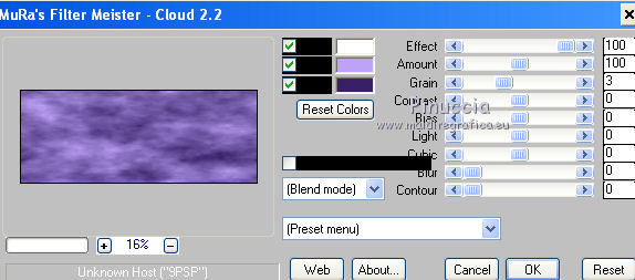 Effetti>Plugins>Mura's Meister - Cloud, con i settaggi precedenti.
