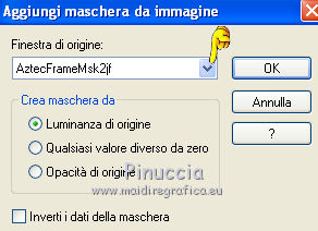 Seleziona la maschera AztecFrameMsk2jf, con i seguenti settaggi: