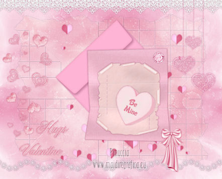 Vedi l'esempio finale.Effetti>Effetti 3D>Sfalsa ombra, con i settaggi precedenti. 12. Apri l'elemento ele26 e vai a Modifica>Copia. Torna al tuo lavoro e vai a Modifica>Incolla come nuovo livello. 13. Regola>Tonalità e saturazione>Viraggio. ![]() Effetti>Effetti 3D>Sfalsa ombra, con i settaggi precedenti. Spostalo a destra.![]() 14. Apri l'elemento ele23 e vai a Modifica>Copia. Torna al tuo lavoro e vai a Modifica>Incolla come nuovo livello. 15, Immagine>Ruota per gradi - 20 gradi a destra. ![]() Spostalo nella pergamena.Vedi l'esempio finale. Effetti>Effetti 3D>Sfalsa ombra, con i settaggi precedenti. 16. Apri l'elemento ele54 e vai a Modifica>Copia. Torna al tuo lavoro e vai a Modifica>Incolla come nuovo livello. Spostalo nella pergamena, in basso a destra.![]() Effetti>Effetti 3D>Sfalsa ombra, con i settaggi precedenti. 17. Apri l'elemento ele58 e vai a Modifica>Copia. Torna al tuo lavoro e vai a Modifica>Incolla come nuovo livello. Regola>Tonalità e saturazione>Viraggio, con i settaggi precedenti. Spostalo nella pergamena, in alto a destra.Vedi l'esempio finale. Effetti>Effetti 3D>Sfalsa ombra, con i settaggi precedenti. 18. Apri l'elemento ele24 e vai a Modifica>Copia. Torna al tuo lavoro e vai a Modifica>Incolla come nuovo livello. Spostalo come preferisci o vedi il mio esempio.Effetti>Effetti 3D>Sfalsa ombra, con i settaggi precedenti. 19. Apri l'elemento ele27 e vai a Modifica>Copia. Torna al tuo lavoro e vai a Modifica>Incolla come nuovo livello. Spostalo dove preferisci o vedi il mio esempio.![]() Effetti>Effetti 3D>Sfalsa ombra, con i settaggi precedenti. 20. Apri il tube GDT~Cute Chibbi Cupid e vai a Modifica>Copia. Torna al tuo lavoro e vai a Modifica>Incolla come nuovo livello. Immagine>Ridimensiona, al 25%, tutti i livelli non selezionato. Spostalo dove preferisci, o vedi il mio esempio.![]() Effetti>Effetti 3D>Sfalsa ombra, con i settaggi precedenti. 21. Apri il tuo tube e vai a Modifica>Copia. Torna al tuo lavoro e vai a Modifica>Incolla come nuovo livello. Immagine>Ridimensiona, se e quanto necessario, tutti i livelli non selezionato. Spostalo dove preferisci o vedi il mio esempio.Effetti>Effetti 3D>Sfalsa ombra, con i settaggi precedenti. 22. Attiva il livello inferiore. Regola>Tonalità e saturazione>Viraggio, con i settaggi precedenti. Attiva il livello superiore. Livelli>Nuovo livello raster. Imposta il colore di primo piano con #db6386. Riempi il livello con il colore di primo piano.23. Selezione>Seleziona tutto. Selezione>Modifica>Contrai - 2 pixels. Premi sulla tastiera il tasto CANC. Selezione>Inverti. Effetti>Plugins>Penta.com - Jeans, con i settaggi standard. ![]() Effetti>Effetti di bordo>Aumenta. Effetti>Effetti 3D>Sfalsa ombra, con i settaggi precedenti. 24. Attiva il livello inferiore. Selezione>Seleziona tutto. Immagine>Ritaglia la selezione. 25. Selezione>Seleziona tutto. Immagine>Dimensioni tela - 800 x 650 pixels ![]() 26. 26. Livelli>Nuovo livello raster. Livelli>Disponi>Sposta giù. Selezione>Inverti. 27. Apri il tube titoune_bordure_bemine e vai a Modifica>Copia. Torna al tuo lavoro e vai a Modifica>Incolla nella selezione. Selezione>Deseleziona. Firma il tuo lavoro. 28. Animazione. Modifica>Copia Unione. Apri Animation Shop e vai a Modifica>Incolla>Incolla come nuova animazione. Modifica>Duplica, e ripeti finchè non avrai 4 fotogrammi. Clicca sul primo fotogramma per selezionarlo e vai a Modifica>Seleziona tutto. 29. Apri la gif xsgs_14007_27311, anche questa composta da 4 fotogrammi. Modifica>Seleziona tutto. Modifica>Copia. Torna al tuo lavoro e vai a Modifica>Incolla>Incolla nel fotogramma selezionato. Animazione>Proprietà fotogramma e imposta la velocità a 15. ![]() Controlla il risultato cliccando su Visualizza e salva in formato gif.![]() Se hai problemi o dubbi, o trovi un link non funzionante, o anche soltanto per un saluto, scrivimi. 13 Febbraio 2013 |