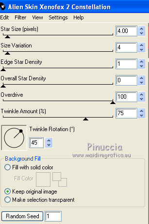 Ripeti l'Effetto Constellation, con i settaggi precedenti, ma cliccando una volta su Random Seed.