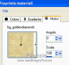 1. Passa il colore di primo piano a Motivi e seleziona il motivo "bg_goldendiamonds" con i seguenti settaggi.