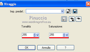 Regola>Tonalità e saturazione>Viraggio, con i settaggi precedenti.