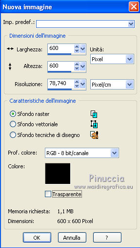 1. Apri una nuova immagine nera 600 x 600 pixels.