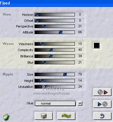 Effetti>Plugins>Flaming Pear - Flood e clicca nuovamente sull'icona della piccola onda per cambiare l'effetto.