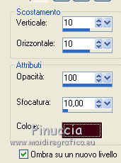 22. Effetti>Effetti 3D>Sfalsa ombra, con il colore #3e0110, ombra su nuovo livello selezionato.