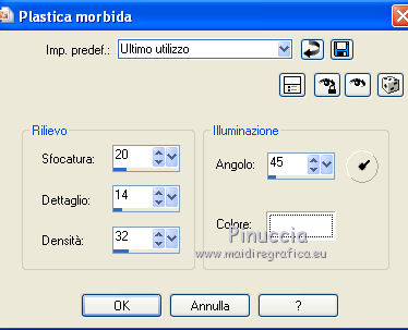 ricorda che questo filtro lavora con i lavori impostati nella paletta dei materiali, ma tiene in memoria il primo settaggio dall'apertura del programma.