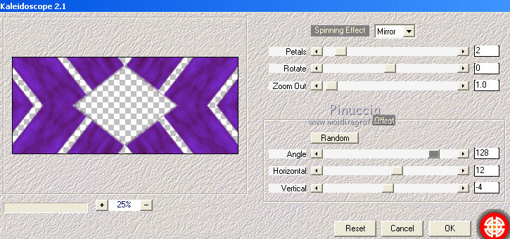 12. Effetti>Plugins>Mehdi - Kaleidoscope 2.1, con i settaggi precedenti.
