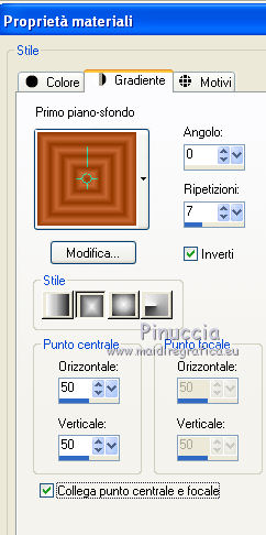 Passa il colore di primo piano a Gradiente Rettangolare, con i seguenti settaggi.