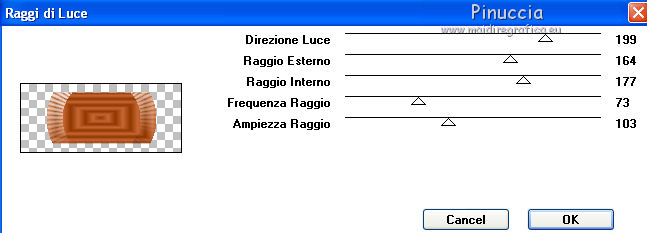 6. Effetti>Plugins>Italian Editors Effects - Raggi di luce, con i settaggi standard.