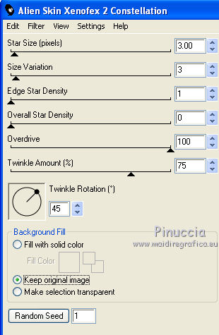 Ripeti l'Effetto Constellation, con gli stessi settaggi, ma cliccando una volta su Random Seed.