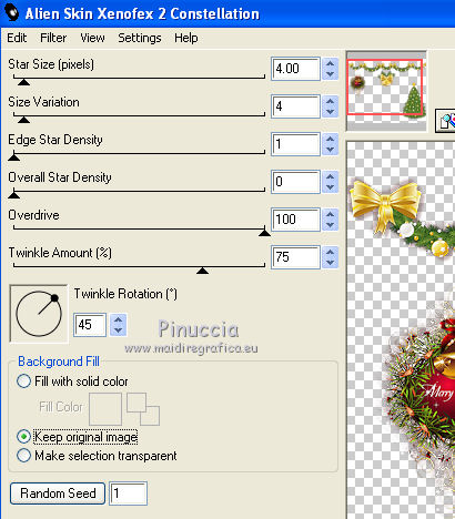 Effetti>Plugins>Alien Skin Xenofex 2.0 - Constellation, clicca su Random Seed e ok.
