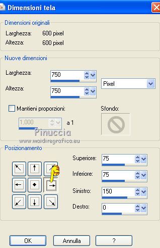 4. Immagine>Dimensione tela - 750 x 750 pixels e clicca sulla freccia a destra.