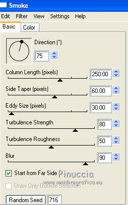 Effetti>Plugins>Eye Candy 4000 - Smoke, con i settaggi precedenti, ma cliccando su Random Seed.