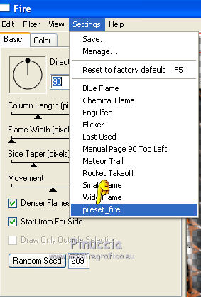 Effetti>Plugins>Eye Candy 4000 - Fire, con i settaggi precedenti, ma cliccando su Random Seed.