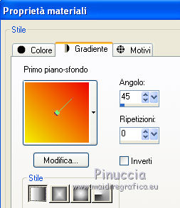 Passa il colore di primo piano a Gradiente, stile Lineare, con i seguenti settaggi: