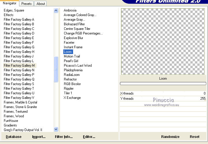 34. Effetti>Plugings>Filters Unlimited 2.0 - Filter Factory Gallery M - Loom, con i settaggi standard.